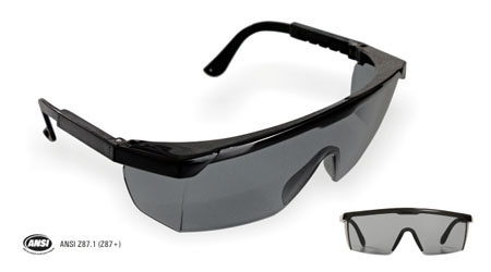 Anteojo de seguridad Libus modelo liviano y ergonómico Argon presenta lentes de policarbonato gris, marco y patilla flexible y regulable, con tratamiento antiraya y filtro UV.