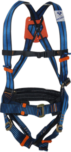 Arnés de seguridad completo. Presenta 3 puntos de enganche laterales, regulables en hombros y piernas y punto de enganche dorsal que brinda la proteccion anticaidas. Posee presillas de cintas con diseño exclusivo para fijar el sobrante una vez ajustado el arnés.