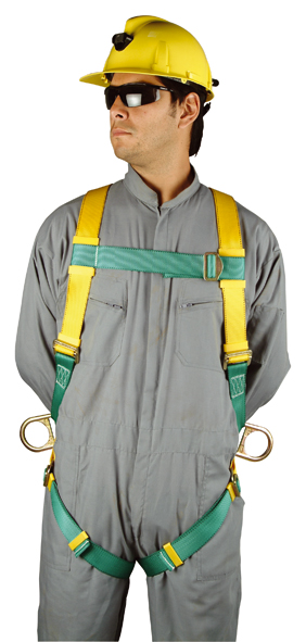 Arnés de seguridad anticaída de cuerpo completo. Presenta un diseño estilo chaleco de ajuste por hebillas a fricción, con sistema de restricción o posicionamiento para el usuario. Posee una sola argolla dorsal anticaidas y dos argollas en la cintura que son utilizadas por el usuario para amarrarse y mantener las manos libres, o si se presenta un riesgo de caida puede restringir la exposición a bordes.