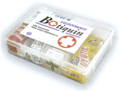 Botiquin plástico fabricado en Poliestireno Cristal semi-rígido con bisagra y cierre. Medidas: 160mm(largo), 110mm(ancho), 25mm(alto). Contiene 10 unidades.