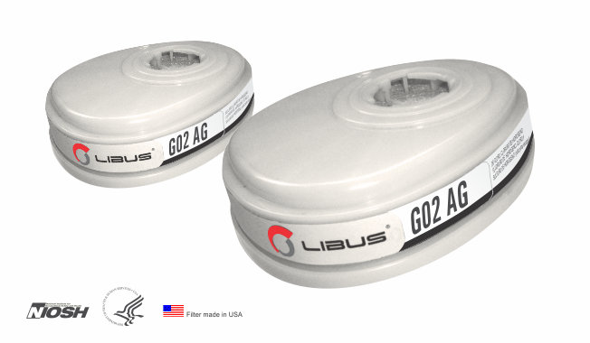 Cartucho Libus G02 AG es un elemento de seguridad industrial que brinda protección contra dióxido de azufre,dióxido de cloro, cloruro de hidrógeno, fluoruro de hidrógeno, cloro y sulfuro de hidrógeno.