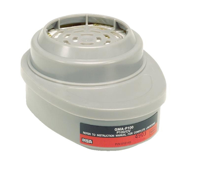 Cartucho MSA GMA P100 es un elemento de seguridad industrial filtrante que brinda protección respiratoria contra polvos, partículas y neblinas. Todos los cartuchos son intercambiables entre respiradores Advantage 200, 200SL, 1000 y 3000, y están codificados con código de colores. Presenta una fácil instalación, poseen bajo perfil y conectores con una sola posición de encastre, que aseguran con un cuarto de giro un ajuste firme.