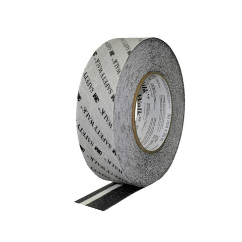 Cinta 3M antideslizante Safety Walk fotoluminiscente de 50 mm de ancho – Rollo de 20mts. Este elemento de seguridad industrial se encuentra realizado en cinta de poliéster recubierta con partículas minerales en la superficie superior, base vinílica autoadhesiva y laminada con una banda central fotoluminiscente.