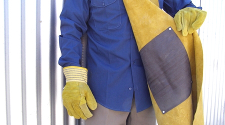 Delantal de Descarne de excelente calidad con refuerzo abdominal en cuero descarne y goma plomada para otorgarle al usuario una mayor proteccion contra soldaduras y radiaciones.
