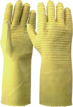 Guante de latex natural con textura tipo mondongo en su exterior que presenta propiedades antideslizantes y resistentes al corte. El interior se encuentra formado con soporte textil. Es flexible, impermeable y resistente al desgarro.