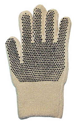 Guante de seguridad elaborado con tejido rizado (Terrycloth) con aplicaciones de «motas» de PVC que le brindan un mayor poder antideslizante. No presenta costuras, es ambidiestro, confortable y posee un buen ajuste. Posee puño elastizado y tiene un tejido abierto que mantiene ventilada la piel. Es lavable.