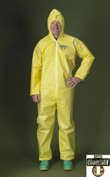 Mameluco Lakeland Amarillo ChemMax 1 esun traje de seguridad industrial liviano de gran confort que se encuentra confeccionado con sustrato de polipropileno laminado con una resina de polietileno de alta densidad. Este material permite una efectiva barrera contra una gran gama de sustancias químicas. Las prendas presentan costuras interlock, ribeteadas y selladas. Cumple con los requerimientos antiestáticos de UNE EN 1149 y con la norma NFPA 99.