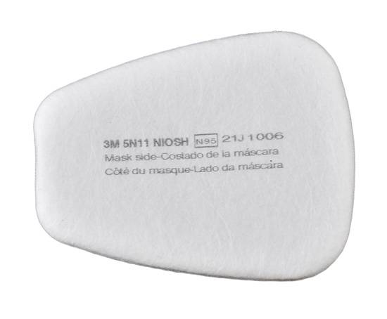 El prefiltro 3M 5N11 es un elemento de seguridad industrial para usarlo en conjunto con el retenedor 3M 501 y los cartuchos de la serie 6000. Brinda una efectiva e higiénica protección respiratoria contra polvos y partículas líquidas sin aceite. Se encuentra fabricado con un Medio Filtrante Electrostático Avanzado, novedoso sistema de retención de partículas que permite mayor eficiencia del filtro con menor caida de presión. El prefiltro 5N11 cuenta con un Medio filtrante antitaponamiento y su novedosa construcción permite la reducción al mínimo del desprendimiento de fibras, logrando excelentes resultados cuando es utilizado en procesos de pintura.